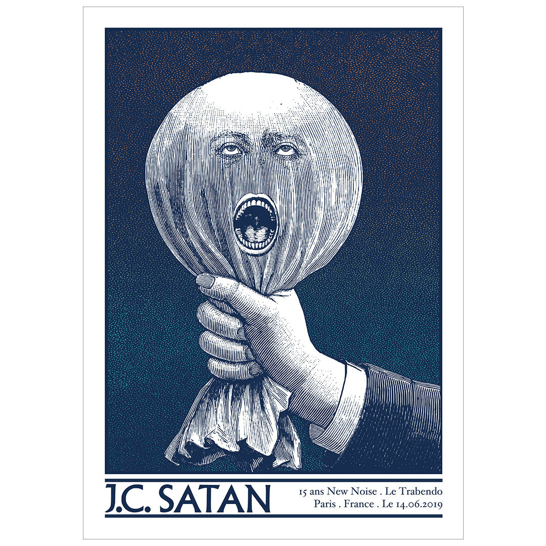 Silkscreened gig poster for J.C. Satan@ Le Trabendo June the 14th 2019.Art by Cyrille RousseauSize : 19.7x27.5 inches (50X70cm)Silkscreen 2 colours.Paper Serio White White 280gr paper.70 units + APsSigned &... Voir la description complète du produit