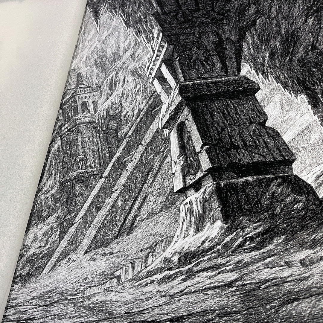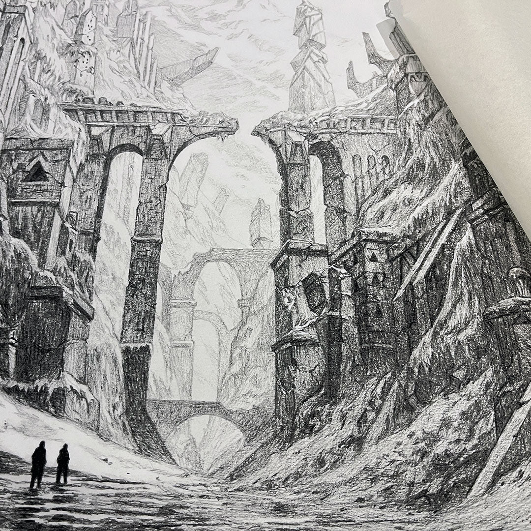 The Dead Cityfrom "At The Mountains of Madness" by HP LOVECRAFTillustrated by François BARANGERPigment Print (giclée) on Fine Art paperLimited Edition of 120Signed & numbered by the artistSize: 50 x... Voir la description complète du produit