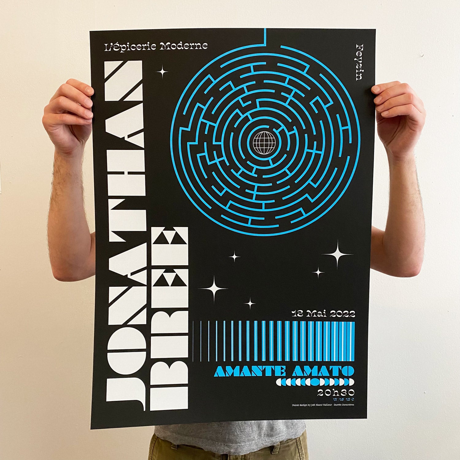 Jonathan Bree | Feyzin (Fr)Screenprint - gig posterConcert @ l'Épicerie Moderne, 2022Design by Sacrés Caractères (Joël Blanc-Tailleur)Limited EditionFormat 50 x 70 cm Voir la description complète du produit