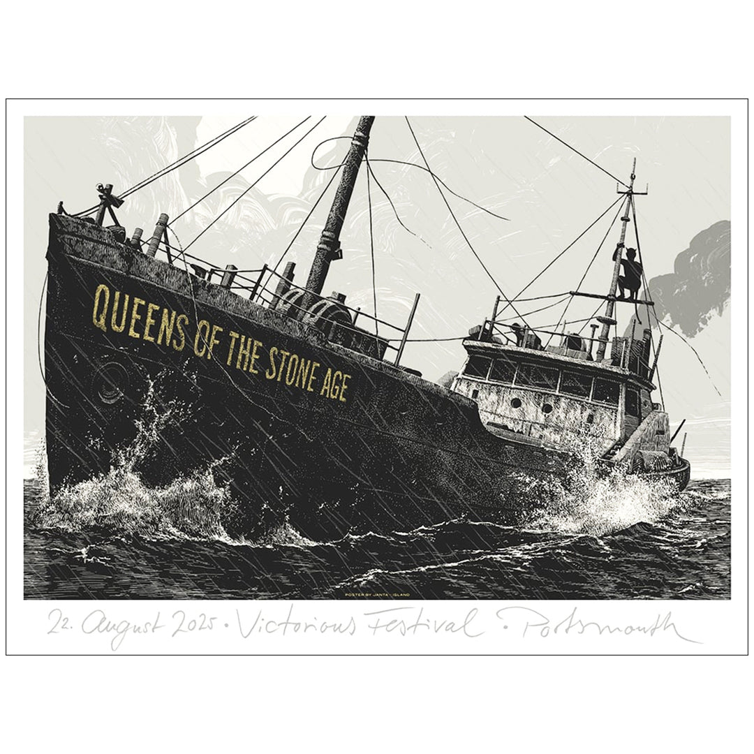 Queens of the Stone Age | Victoria Fest.Official gig posterVictoria Festival, Portsmouth / August 2025Designed by Phillip Janta.Screen print on black paper 300 g/m².Signed & numbered Edition of 130 (AP).Size 46 x... Voir la description complète du produit