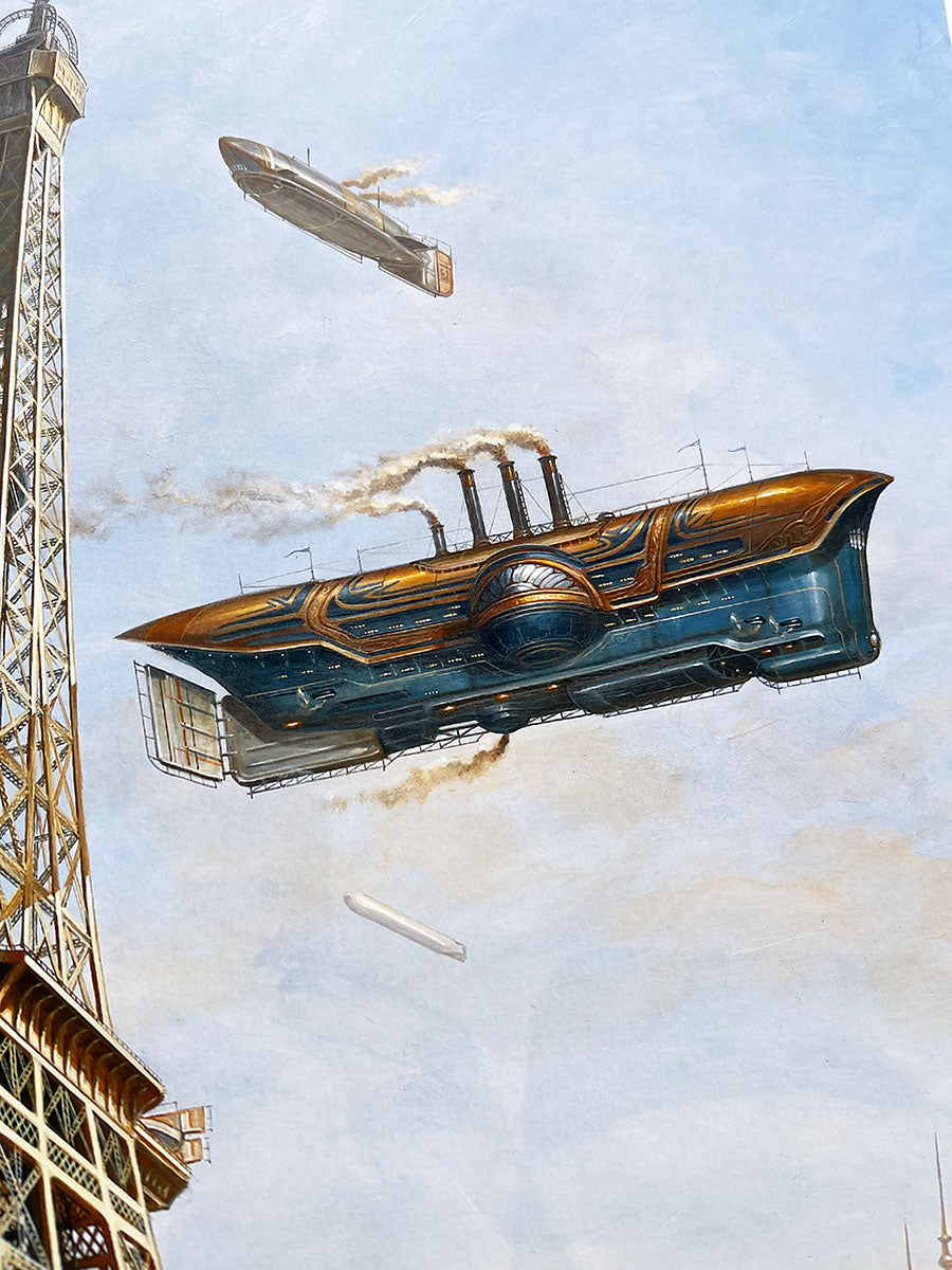 Astoria is an exclusive fine art print by fantasy and steampunk master Didier Graffet. Produced as a high-quality pigment print on fine art paper, it captures the spirit of a mechanical and poetic world between sea and steam.