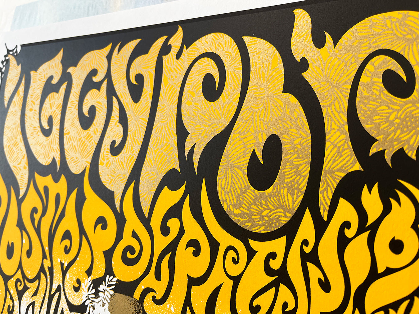 Screenprint with metallic ink.