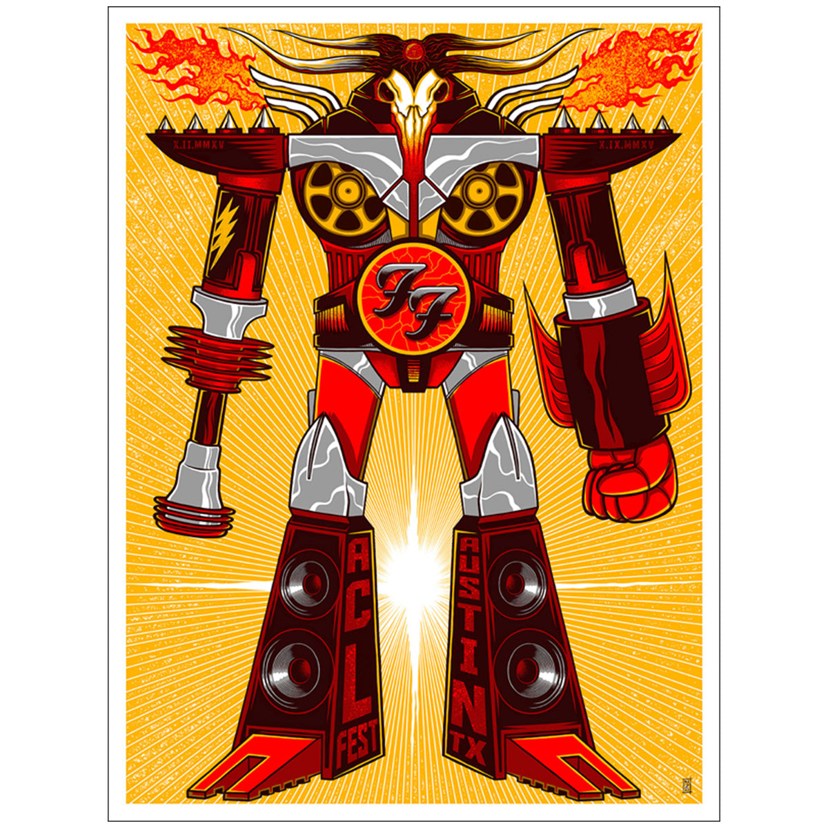 Foo Fighters | Austin, TX 2015 Sonic Highways World Tour Rare official Foo Fighters gig poster, screenprinted by artist Jim Mazza for their 2015 Austin City Limits Festival concert in... Voir la description complète du produit